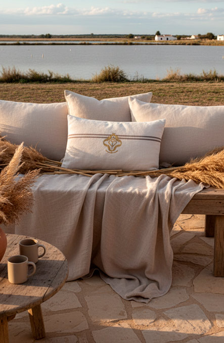Parfait pour apporter une touche de décoration vintage à votre salon, chambre ou espace cosy, ce coussin en lin ancien est à la fois robuste, élégant et chargé d’histoire.