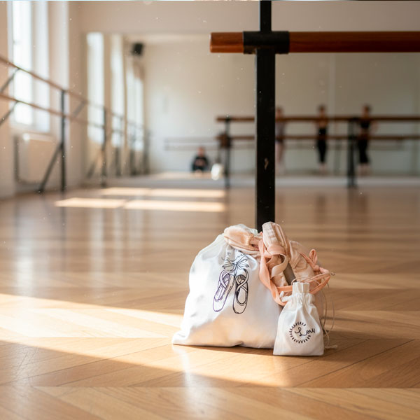 Un ensemble de pochettes en coton organique pour ranger joliment ses essentiels de danse.