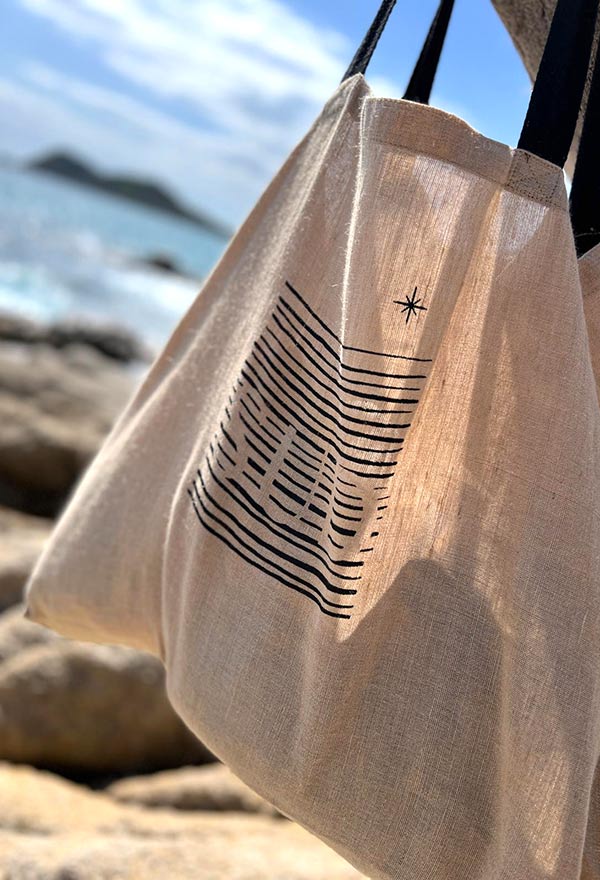 Tissu naturel, impression artisanale, et de la place pour tout ce qui compte.