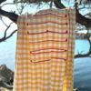 Il a ce charme qu’on ne fabrique plus : une trame légèrement irrégulière, une douceur patinée par le temps, et un motif de légumes tout droit sorti d’une cuisine joyeuse d’autrefois.