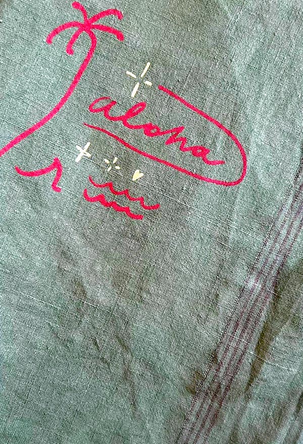 A la fois rétro et solaire, voici le TORCHON VINTAGE “Aloha” : un linge ancien revisité par la couleur et la sérigraphie artisanale, pour faire entrer un air de vacances dans la maison..